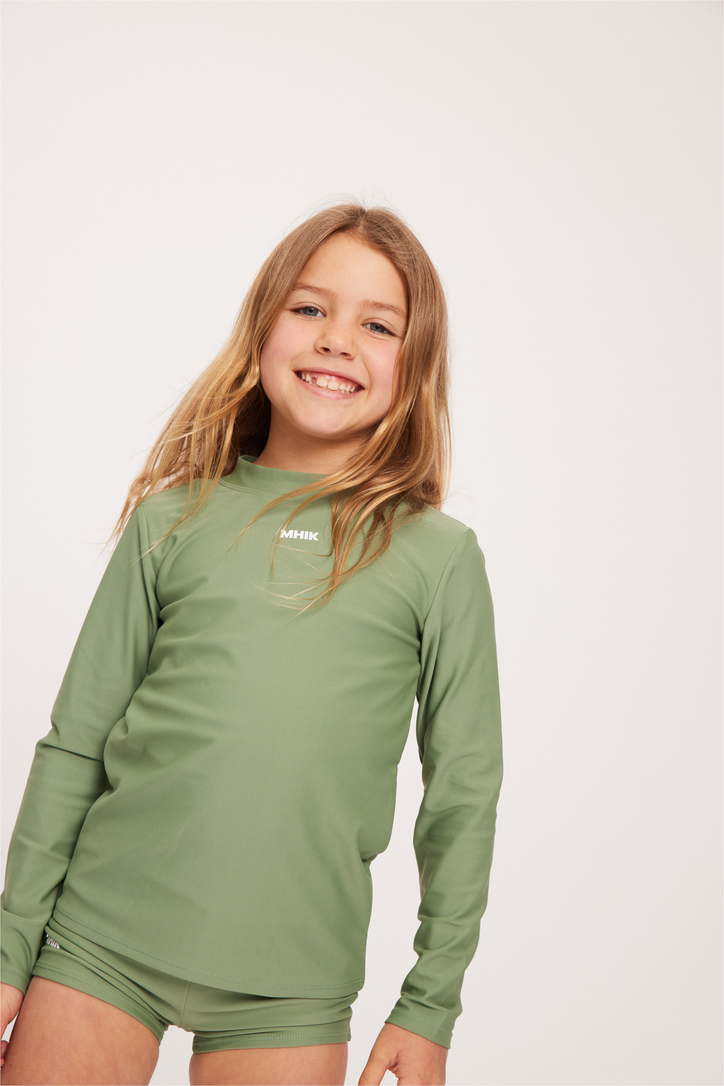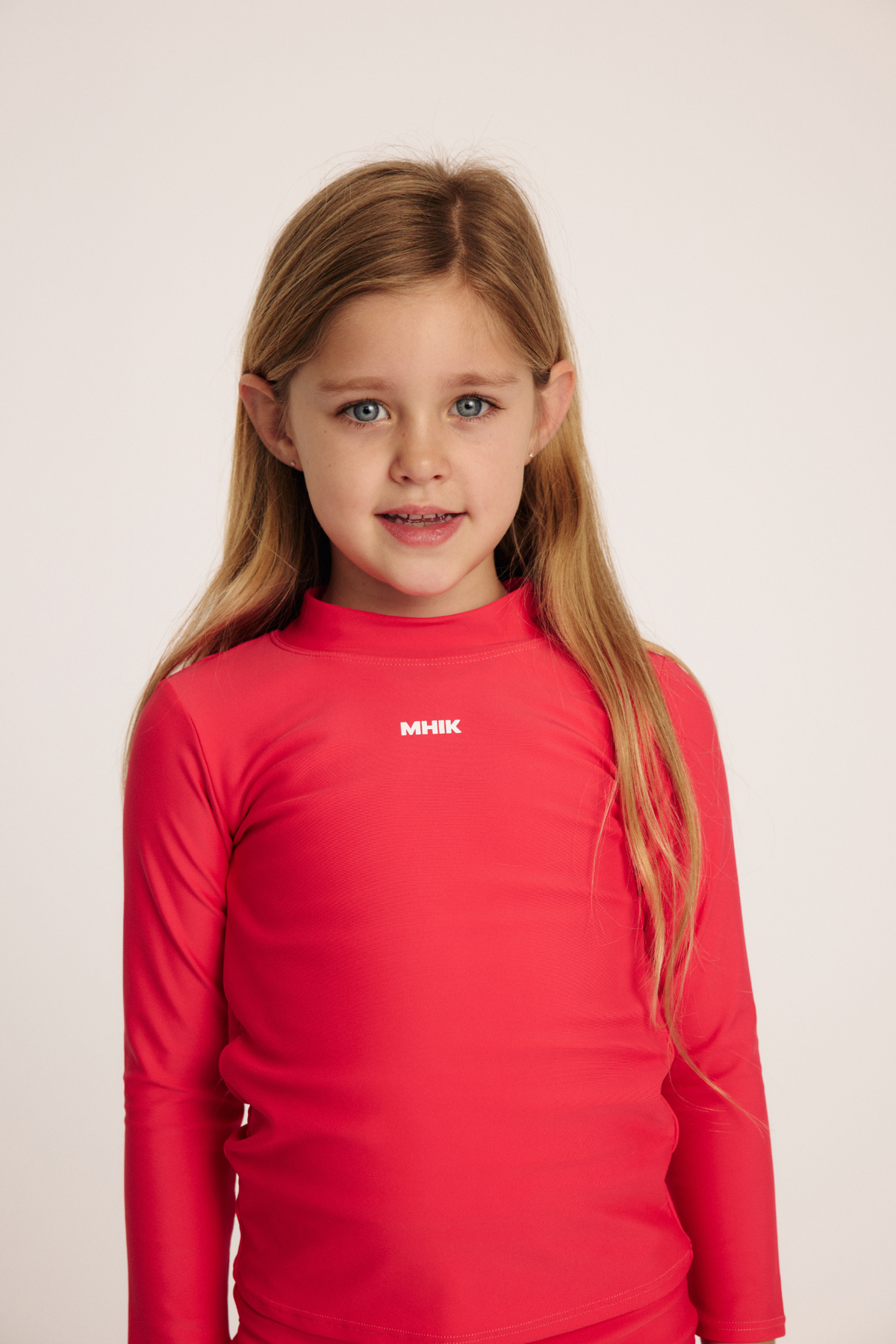 The Rashie Top pairs perfectly with our shortie bottoms or racerback tops, making it a versatile essential for every swim kit.